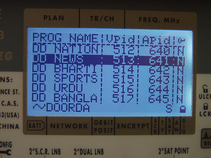 DD Kashir Srin | 6 250 | 3/4 | 3A India | 180+ cm | DVB FTA |
