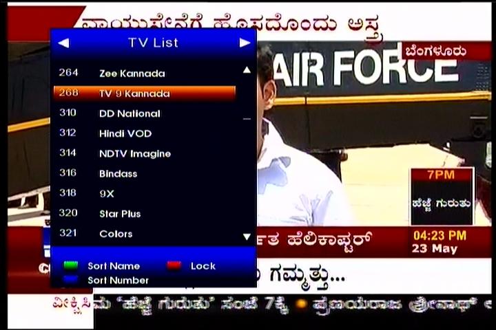 Jaya TV India , TV9 Kannada , SUN News , Telegu VOD-SUN Direct info channel