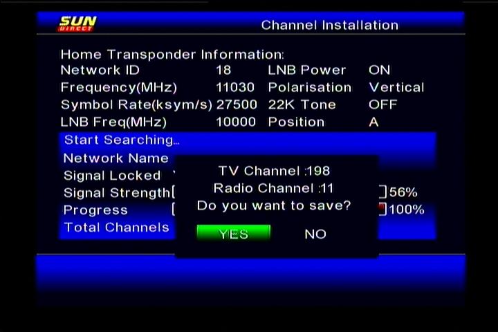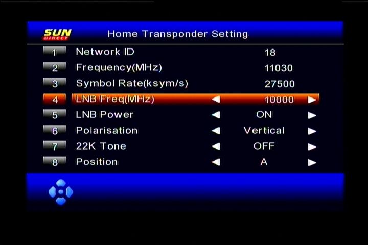 Insat 4B at 93.5°E-packet SUN Direct DTH: DVB-S2/MPEG-4 Samsung DSB-B580R-receiver menu