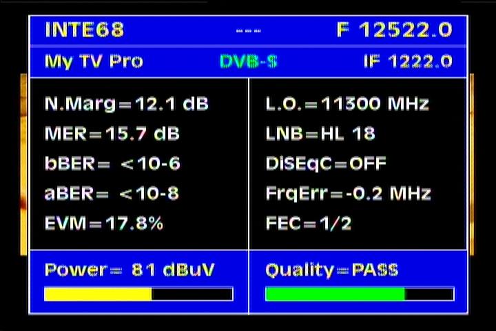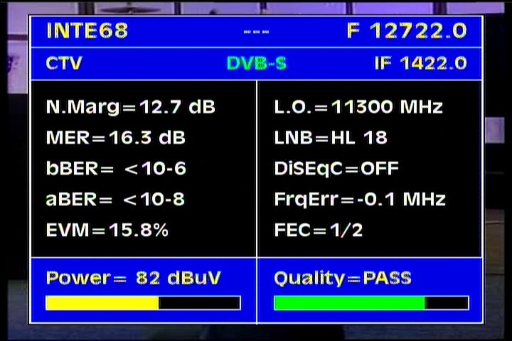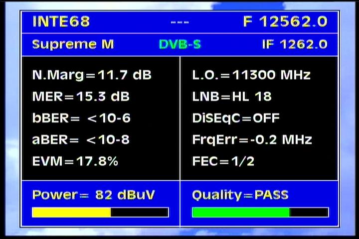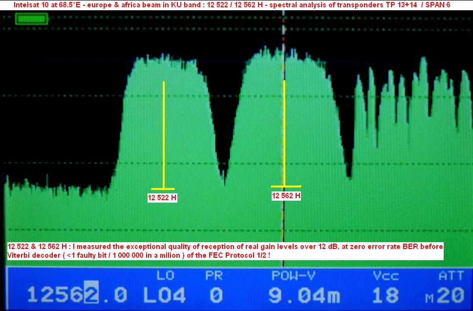 12 522 & 12 562 H : I measured the exceptional quality of reception of real gain levels over MER=12 dB, at zero error rate BER