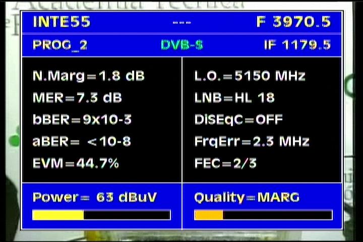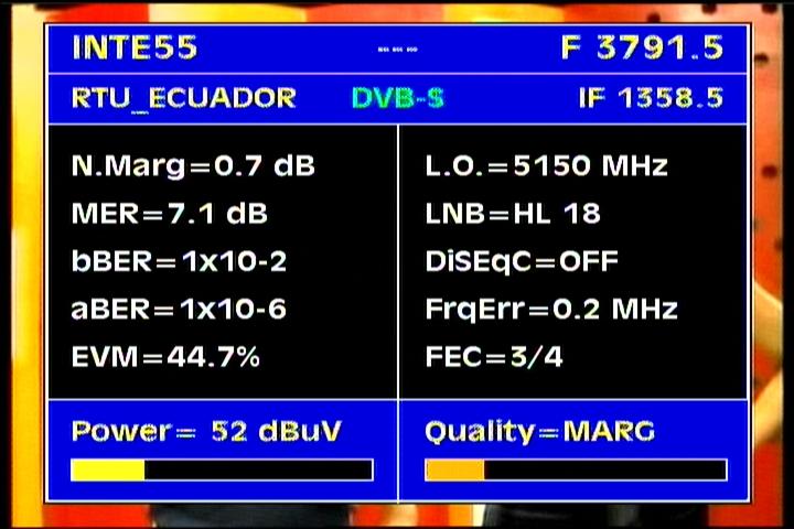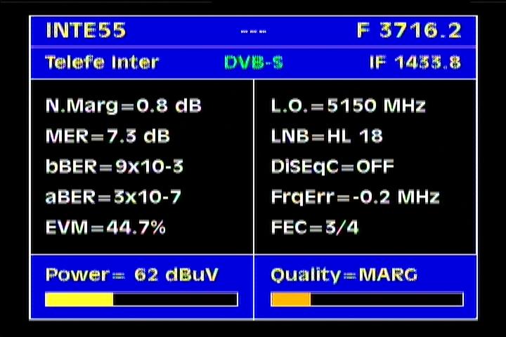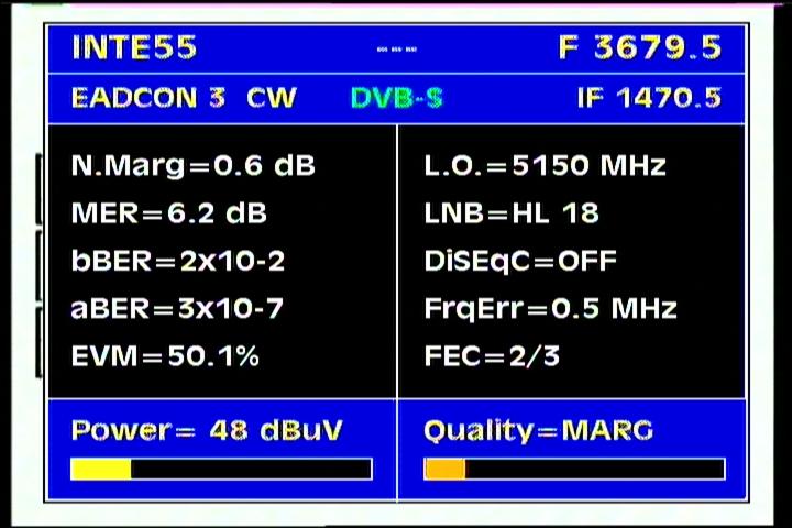 on the packet RPP at f=3 670 MHz .Threshold level required to identify the carrier at FEC 2/3 is the MER=3 dB .