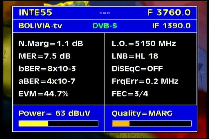 Intelsat 805 at 55.5°W - Americas/Europe footprint : 3 760 H Bolivia TV