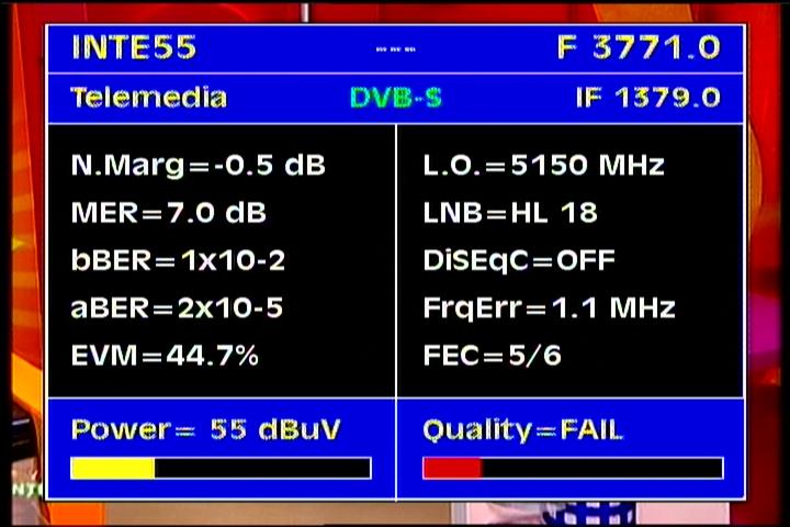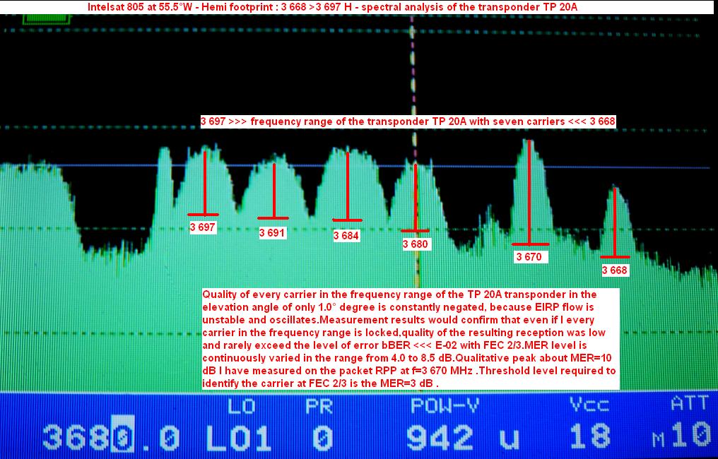 --- Intelsat 805 at 55.5°W - Hemi footprint : measuring the quality of the carrier in the spectrum of the transponder TP 20A ---