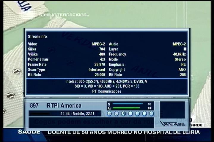 Intelsat 805 at 55.5°W - Americas/Europe footprint : 3 612 V Canal 9