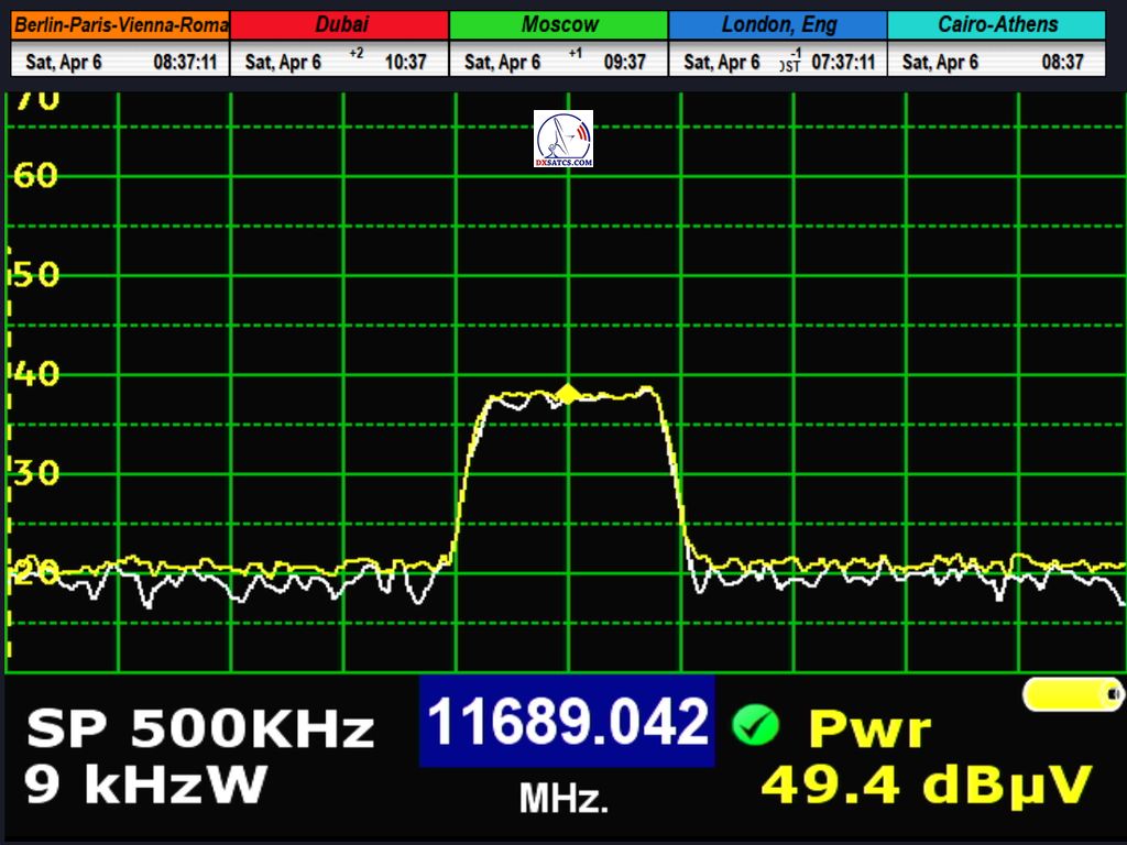 na danej frekvencii f=11 689,042 MHz_V nevysiela,uverejňujem najaktuálnejšie výsledky z monitoringu rádio nosnej z dnešného dňa