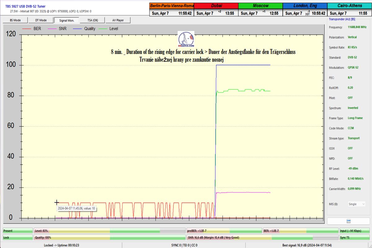 dokáže že HW/SW konfigurácia PC karty TBS 5927 a programu EBSpro umožňuje dosiahnúť dokázateľne stabilný príjem aj tých najnižších Symbolových