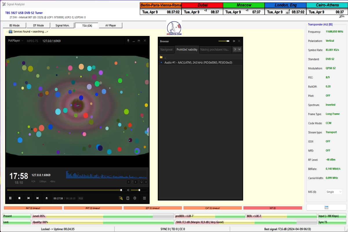 Poznámka #2 : moja výskumná činnosť potvrdila že pri aplikovanej HW/SW konfigurácii PC karta TBS 5927+EBSpro má na dosiahnutie stability alebo spojitosti