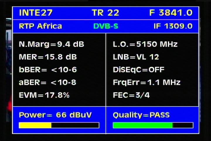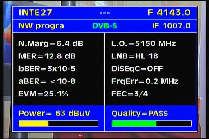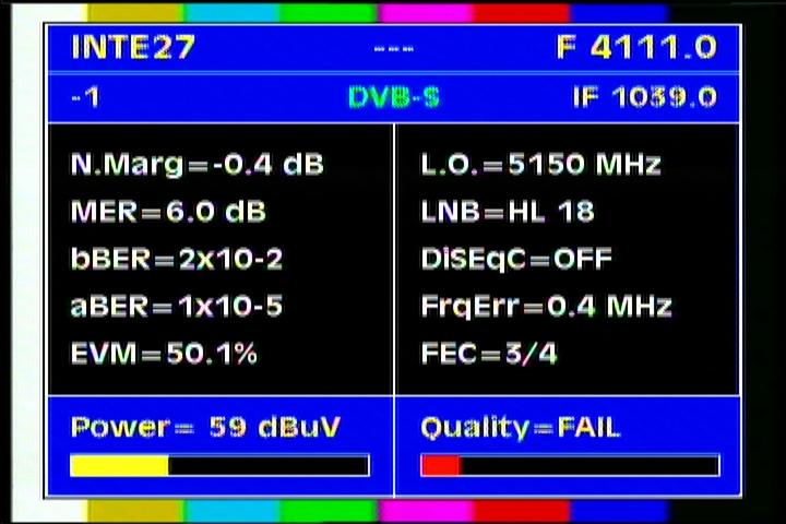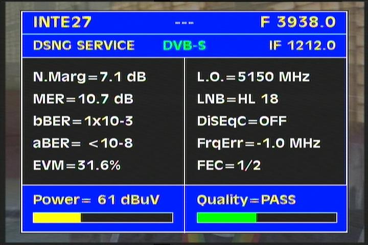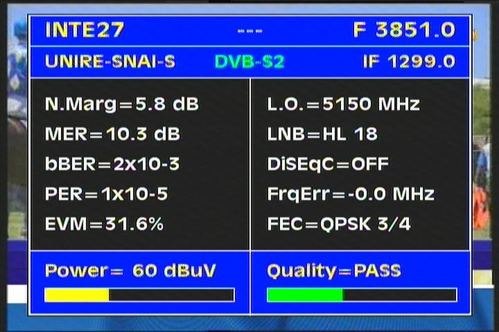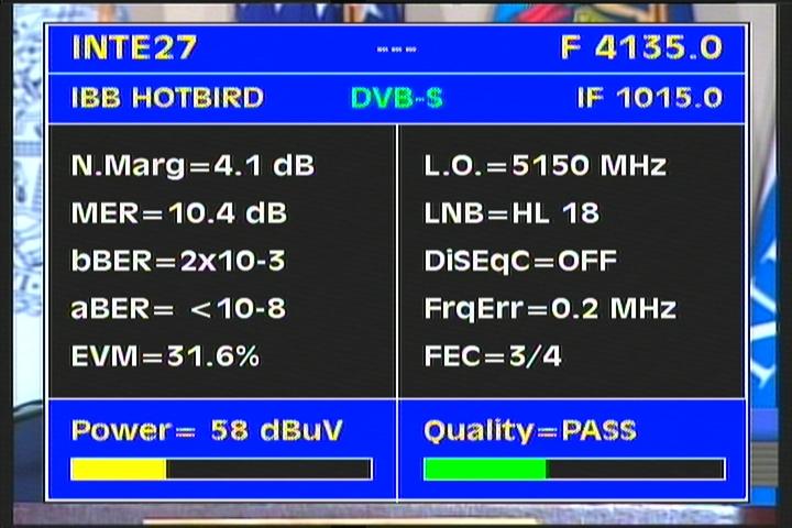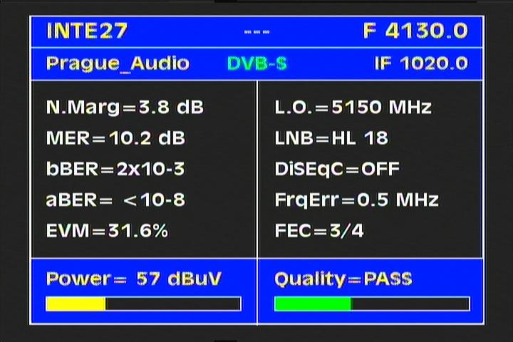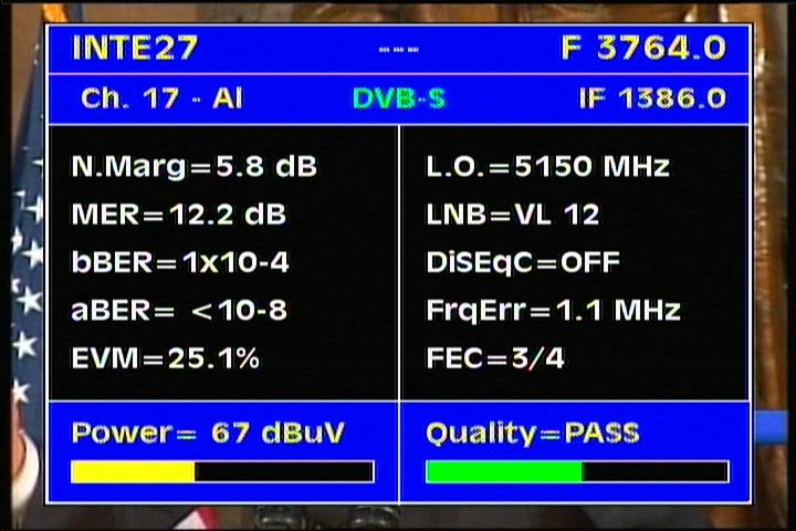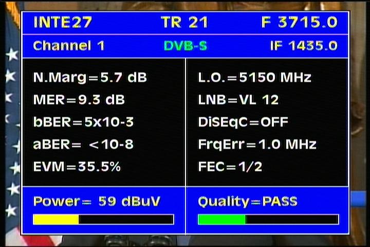 DVB-S2/EVM=35.5% : EVM value clearly determines that the value of the voltage levels of demodulated symbols in QPSK