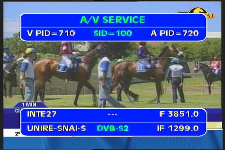 Intelsat 907 at 27.5°W - NE zone footprint : 3 851 L DVB-S2/QPSK feed UNIRE-SNAI Italy