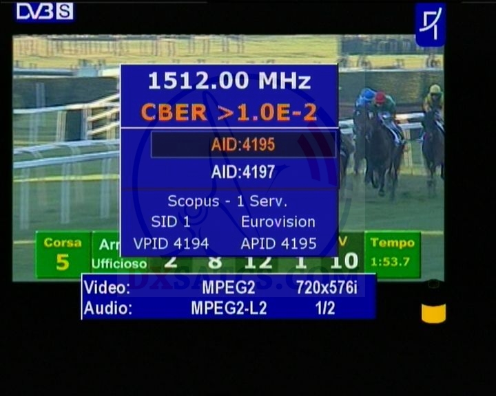 DVB-S-QPSK-MPEG-2-720x576i-Video-TS=5.3 Mbps-25Hz-4:3,Audio-192 kbps-48kHz