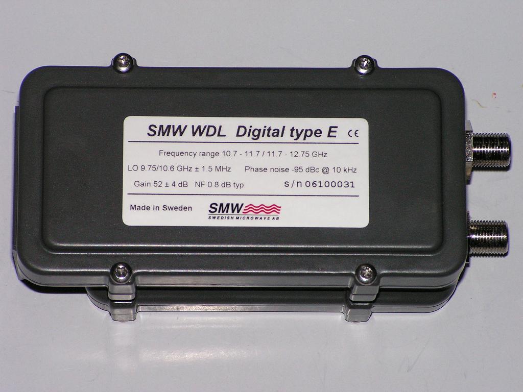 PREDSTAVENIE JEDNÉHO Z NAJLEPŠÍCH JEDNOPOLARITNÝCH KONVERTOROV PRE PRÍJEM V PÁSME KU VO SVETOVOM MERADLE S TECHNOLÓGIOU DRO OD ŠVÉDSKEHO VÝROBCU SWEDISH MICROWAVE - WDL DIGITAL DUAL OUTPUT TYP E - S EXTRA NÍZKOU ÚROVŇOU FÁZOVÉHO ŠUMU PHASE NOISE -95 dBc @ 10 kHz A S VYSOKOU STABILITOU FREKVENCIE LOKÁLNEHO OSCILÁTORA +/- 1,5 MHz,KTORÚ MI NA PRIAME ZADANIE VYHOTOVILI V LABORATÓRIU SMW V MESTE MOTALA - ŠVÉDSKO.