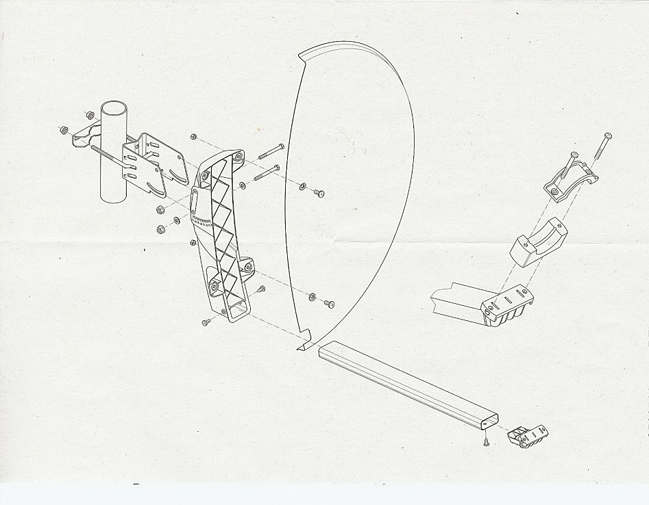 Sučastou nos.kon.su zaistovacie skrutky,matice a zaistovacie zámky. Spolahlivým prevedením sa javia konštrukcie,ktoré sa upevnuju pomocou dvoch zámkov,uchytov čím sa minimalizuje pravdepodobnoist pootočenia celeho celku.Ak sa vyskytne prevedenie s jedným zámkom doporučuje sa inštalovat pod daný zámok,uchyt další konštrukčný prvok,ktorý síce pootočeniu nezabráni,zamedzí však následnému zosunutiu celej zostavy,čo je doležité pre obmedzenie príp.poškodenia spodnej časti paraboly.Pri preberaní kompletu je doležité zvýšenu pozornost venovat kompletnosti daného výrobku.Jednou z častých príčin korozie je príp.nekompletnost výrobku príp.strata daných skrutiek pri kompletizovaní,kedy sa práve skrutky v napr.nerezovom prevedení nahradia kovovými bez povrchovej upravy,čím sa postupná korozia rozlieha po dlhšom čase po celom tele danej konštrukcie.Vzhladom ku zvýšenej agresivite vonkajšieho prostredia čoho dokazom bolo napr. leto roku 2008 v okresoch nm,tn je doležité sa zamerat na kvalitu spomenutých prvkov ale aj najma na zabezpečenie dokonalého fixovania systému čo je možné zrealizovat pomocou dalších doplnkov dodaného príslušenstva vo forme napr.tzv vejárových,pérových podložiek, zaistovacích tzv.kontra matíc podla daného priemeru.Základom uspechu a dlhodobej spolahlivosti prevádzky systému pri inštalácii je použitie primeranej a dostatočnej sily pomocou ktorej zabezpečíme stabilizáciu prijímacieho kompletu a zabránime tým tak častému javu, akým je čiastočné príp.uplné odsmerovanie celej zostavy.Dalším z faktorov od ktorých sa odvíja nielen cena je rozmer paraboly.Tento udaj sa vačšinou udava v jednotkách centimetrov.Polemizovat o výhodách a nevýhodách je neopodstatnené v sučasnosti pre príjem vo fixnom prípade plne dostačuje rozmer o velkosti 80 cm.V prípade motorického prevedenia s umyslom zabezpečit príjem z dostupných družíc pre danu lokalitu je výber individuálny v závislosti od priestorových podmienok inštalácie a príp.konštrukčných možností miesta inštalácie. Napr. pri rozmeroch.nad 200 cm može posobenie vetra dokonale preverit kvalitu prevednia jednotlivých montážnych ukonov.Posobenie vetra totiž výrazne može znížit v prípade nevyhovujuceho kotvenia paraboly jej životnost.Výminkou nie su prípady,kedy vdaka nevyhovujucemu fixovaniu a následnému pádu príp.zosunutiu bola parabola poškodená príp.uplne znehodnotená.V prípade motorizovanej supravy vačších rozmerov nainštalovaných na vyvýšených miestach sa vdaka trvalým a silným náporom vetra výrazne znížila funkcia a životnost napr. tiahlových motorov.Parametre ako velkost by mali byt závislé aj od využitia napr.od počtu v ohnisku umiestnených konvertorov v prípade fixného prevedenia.