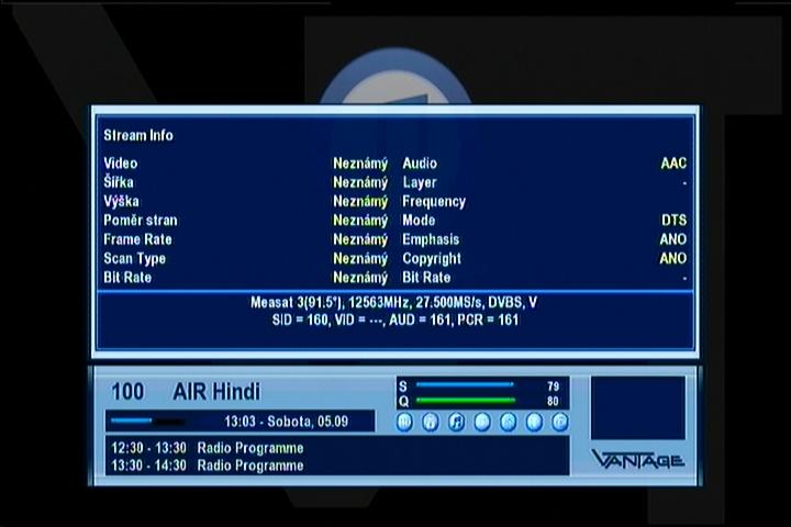 Measat 3 at 91.5°E : percent Q and stream infos