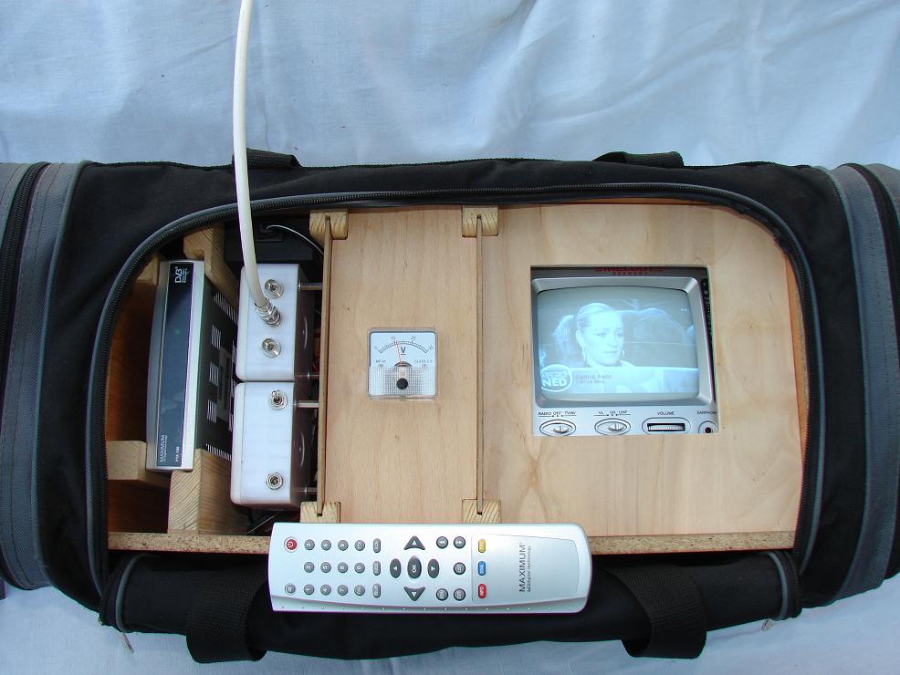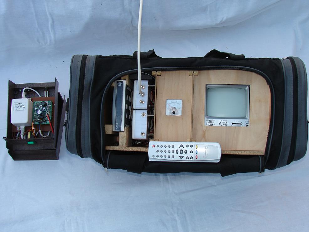 Po predbežnom vzájomnom prepojení jednotlivých dielov zariadenia vyplynula nutnost umiestnit ich do rozmerovo prijatelneho obalu.Kedže bolo nutné previest umiestnenie čo najspolahlivejšie a so zvýšenou odolnostou voči príp.otrasom a možným poškodeniam bolo preto jedným z materiálov vhodných pre výstavbu použité drevo,t.j drevotrieska v kombinácii s preglejkou.Konštrukcia pozostáva z jednotlivých vzájomne pomocou medzistien oddelených dielov,ktoré su rozoberatelné.Vstupný konektor zo sat konvertora je umiestnený na jednej z plastovýh krabíc.dalšia obsahuje prepínač pre prevádzku s dvoma polohami,pričom v jednej z poloh je zabezpečená prevádzka v druhej je prístroj v nabíjacom režime,povedla umiestnený vstupný konektor pre nab.zariadenie..Vzájomné prepojenia medzi akumulátorom a jednotlivými prvkami realizované pomocou svorkovnice umiestnenej v plastovej krabici.V strede nad akumulátorom umiestnený kontrolný ručičkový panel pre kontrolu napatia na výstupných svorkách akumulátora.Kedže jednou z prirodzených vlastností akumulátora je ubytok kapacity bolo potrebné vytvorit nabíjacie zariadenie pomocou ktorého sa spomenuté straty eliminuju pravidelným dobíjaním.Konštrukcia vytvorená z elektronickej časti zab.zariadenia spolu s transormátorom zodpovedajucich hodnot.Jednou z výhodných vlastností je schopnost neprekročit príslušné hodnoty a nepoškodit tak akum.príp.prebíjaním.Zariadenie umiestnené v plastovej inštalačnej krabici pozostávajucej z dvoch dielov.Dodatočne na prednom paneli umiestnený hlavný vypínač spolu s indikačnou letdiodou,v zadnej časti výstupný konektor a vstup pre sietovu šnuru.Jedna z mnohých funkcií sat.receivera umožnuje pomocou indikátora urovne signálu vyjadrenej v percentách previest nastavenie danej supravy na max.hodnoty.Dalej je možné prevádzat vdaka spomenutej tech.výbave kontroly diseqc prepínačov,príp.previest nastavenie ako fixnej tak aj otočnej supravy s diseqc motorom.
