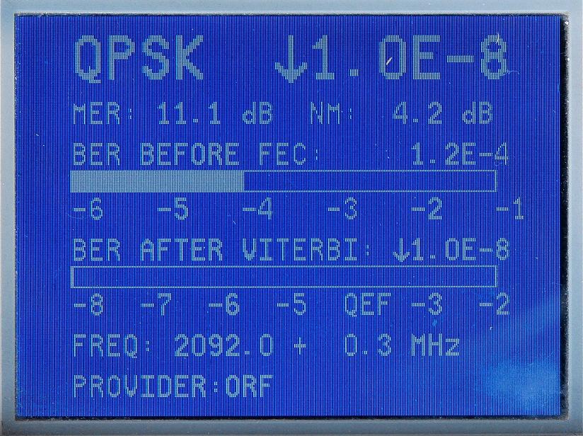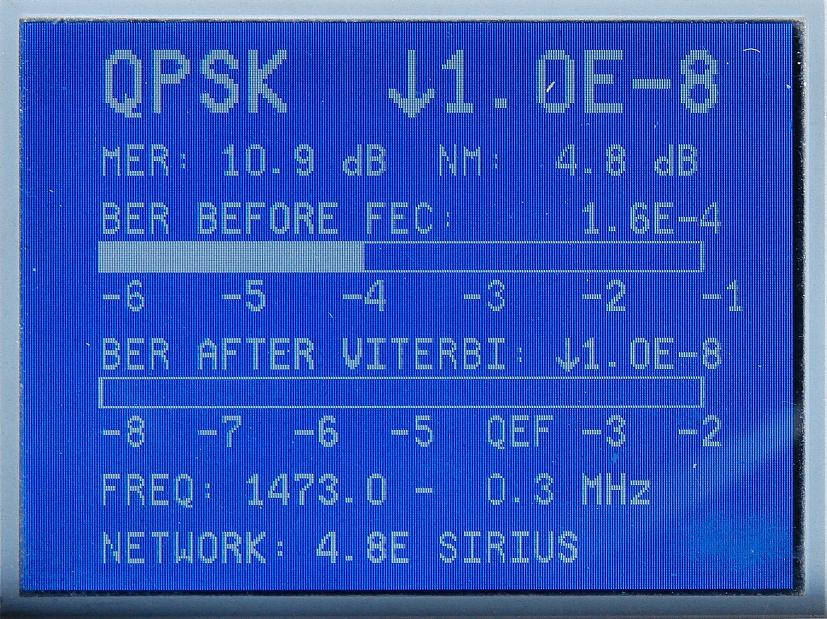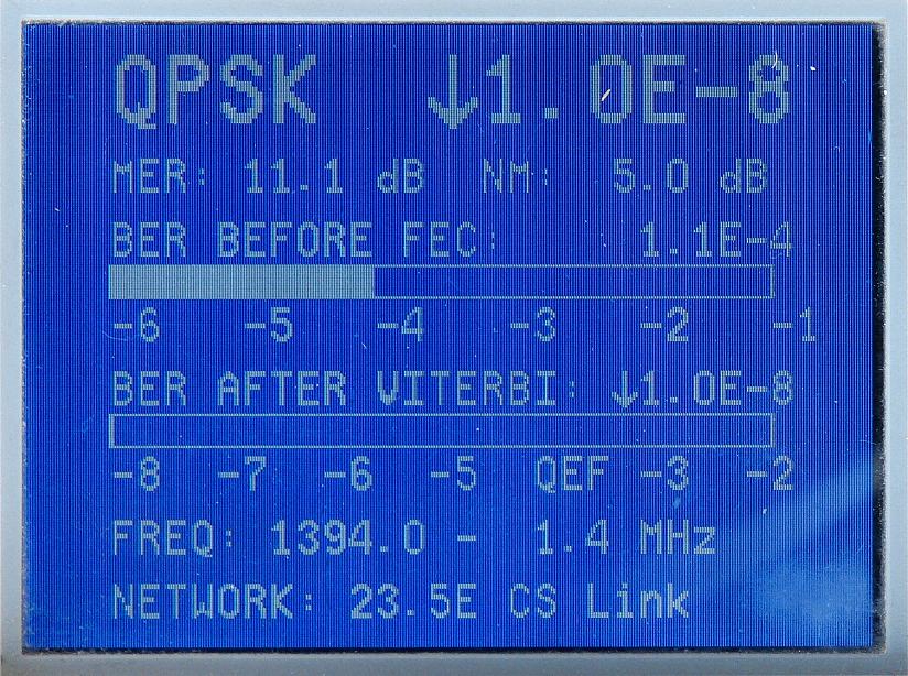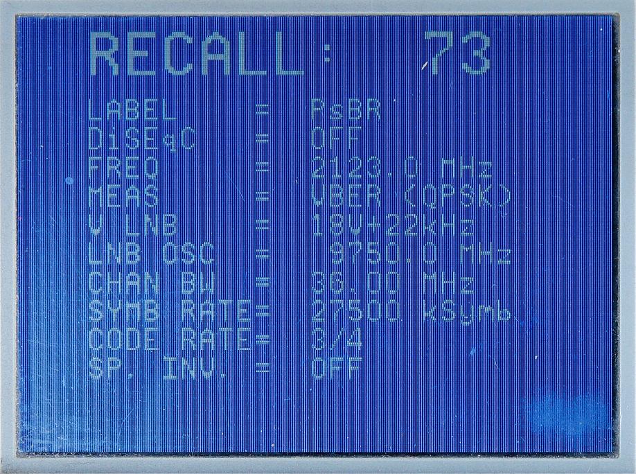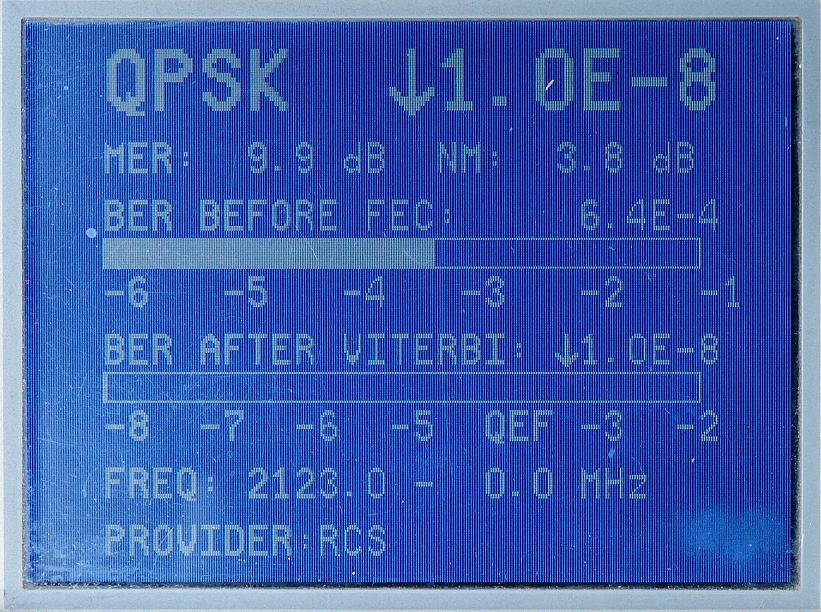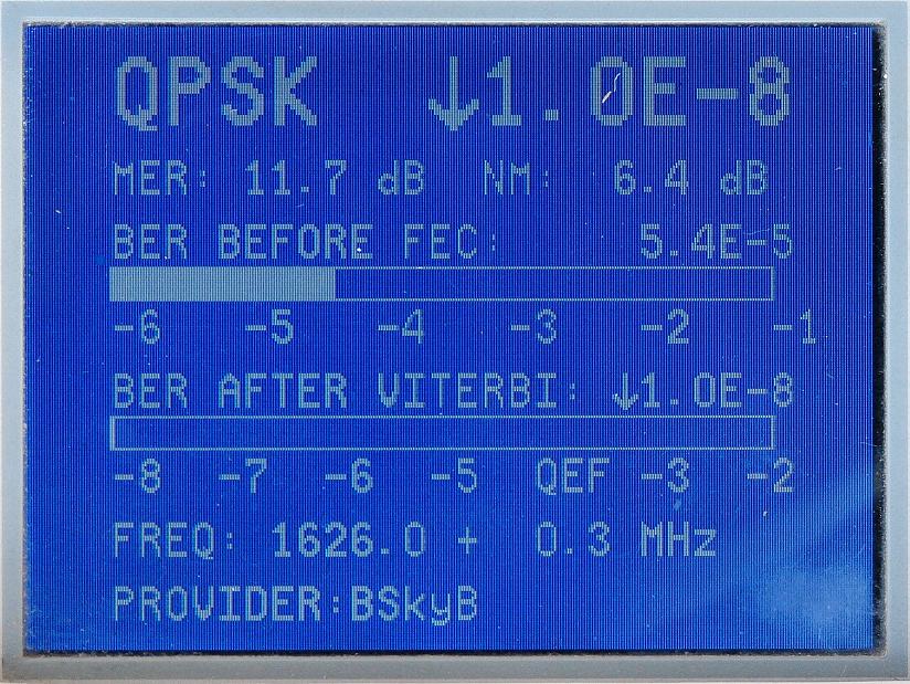 3, Anténa Visiosat Big Bisat :výsledky meraní intenzity a kvality signálu DVB-S s prístrojom Promax Prolink
