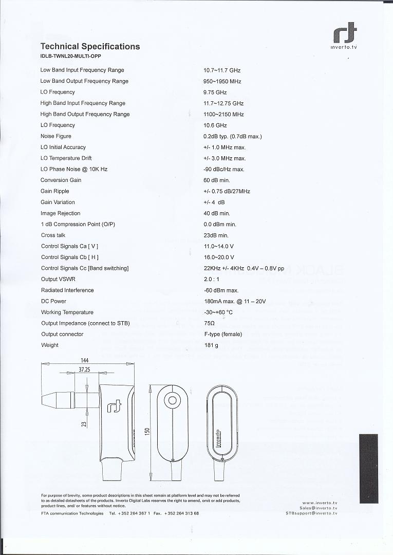 LNB ,ktorý umiestnim do hlavného-nie do postranných ohnísk antény.Výrobca neuvádza že zisková hladina reflektora 36 dBi sa už pri