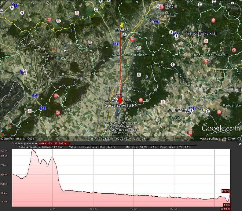 geografické činitele v signálnej trase : sklon reliéfu , nadmorská výška , vzdialenosť /zdroj Google.com/