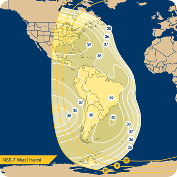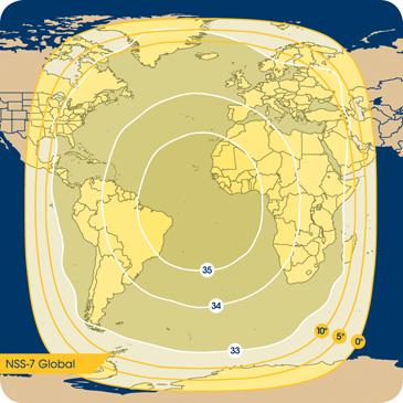 NSS 7 global footprint NSS 7 East Hemi footprint NSS West Hemi footprint