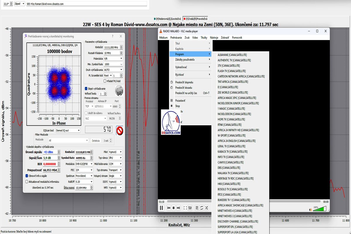SK_Canal+ Afrika v strednej Európe _ Roman Dávid z Lučenca je tým prvým v Európe,kto nespochybnitelne dokázal dosiahnutie jedného konštantného LOCKU na daných frekvenciách 11 051+11 111 MHz a stav konštantne nulovej chybovosti BER:0,0000000 v celej verifikačnej jednotke monitoringu t=72 hodín len na f=11 111 MHz v zemepisnej oblasti Stredná Európa s priemerom D=450 cm.