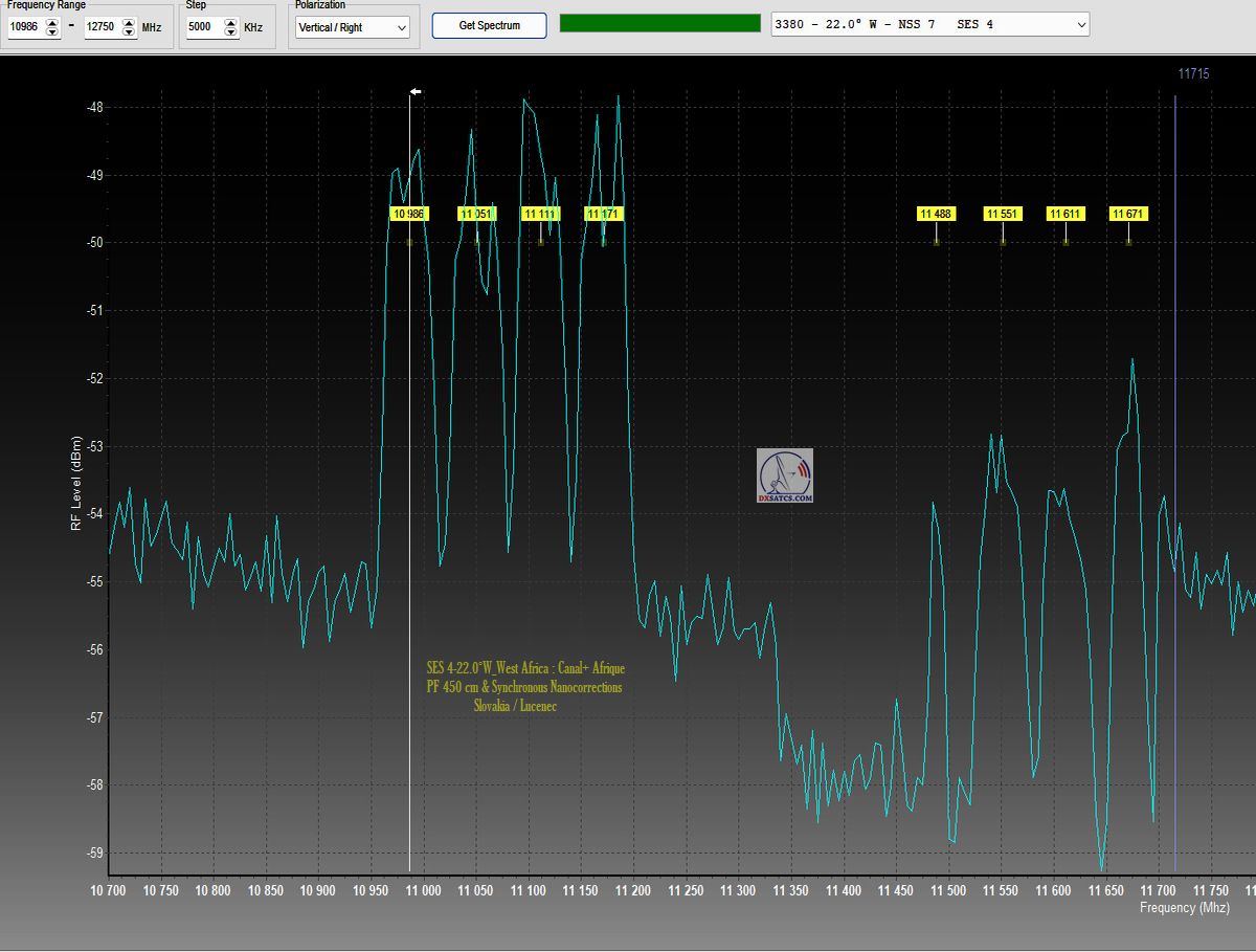 ►►SES 4 at 22.0°W-West Africa footprint-Canal+ Afrique : frequency spectrum analysis