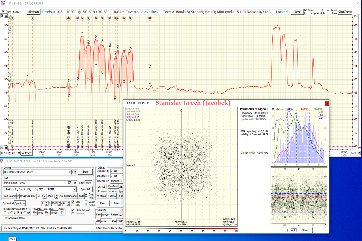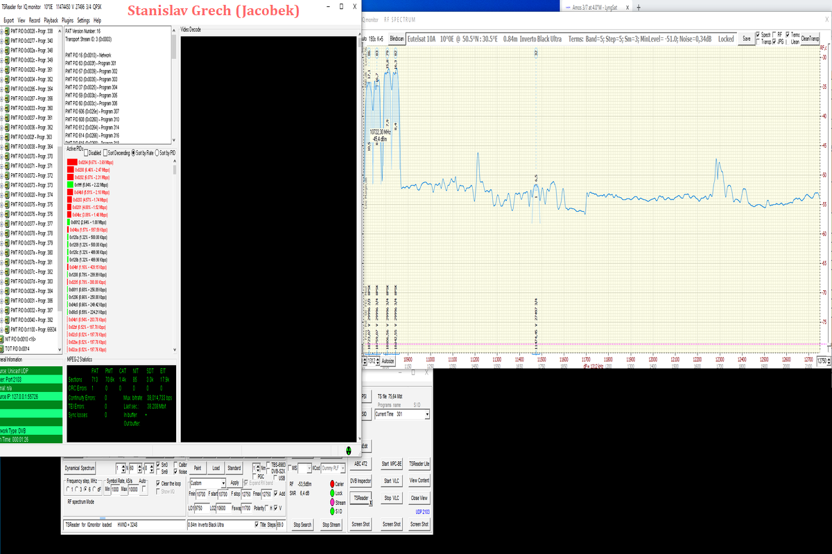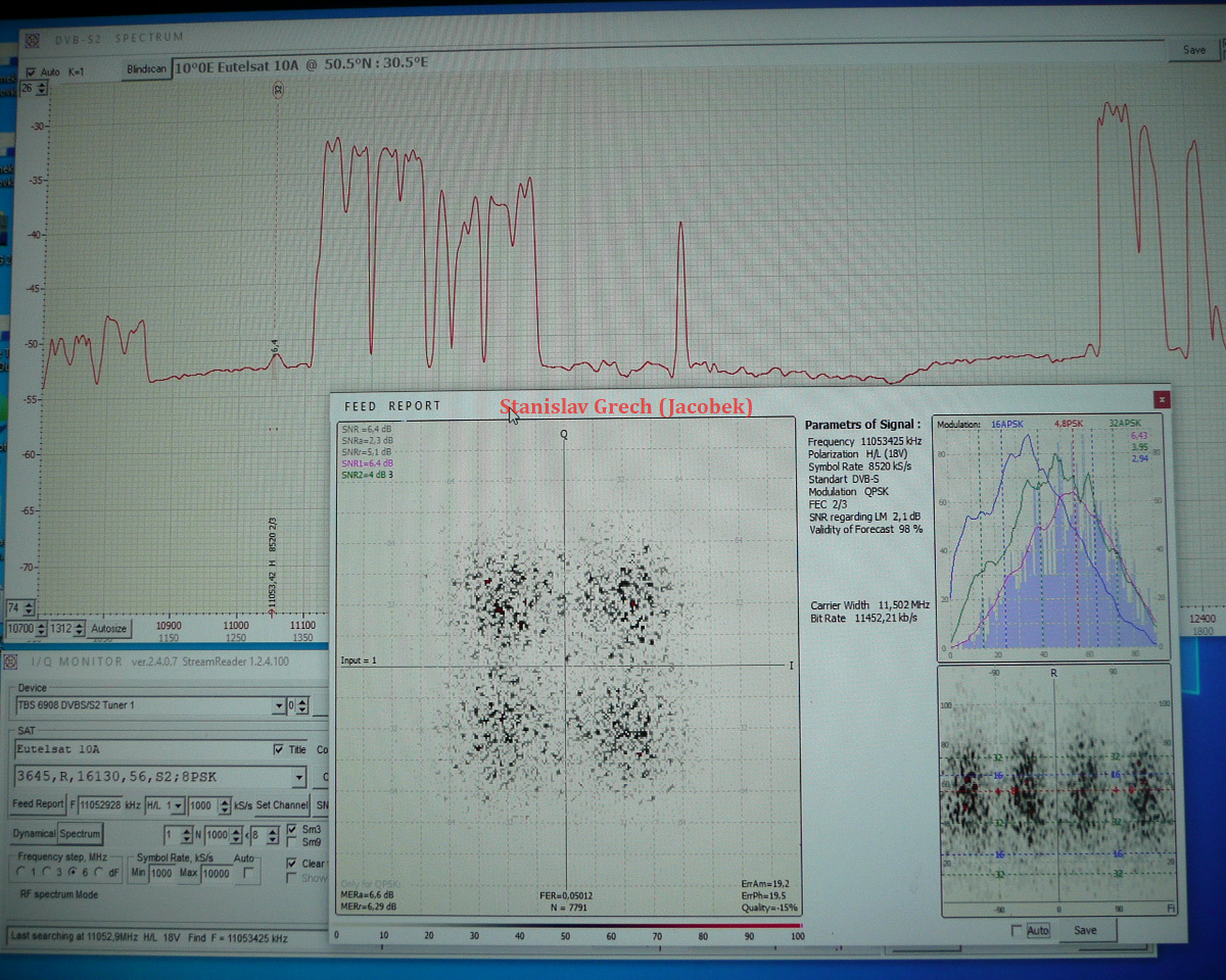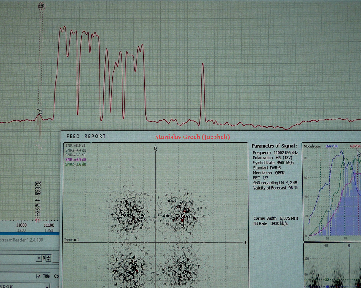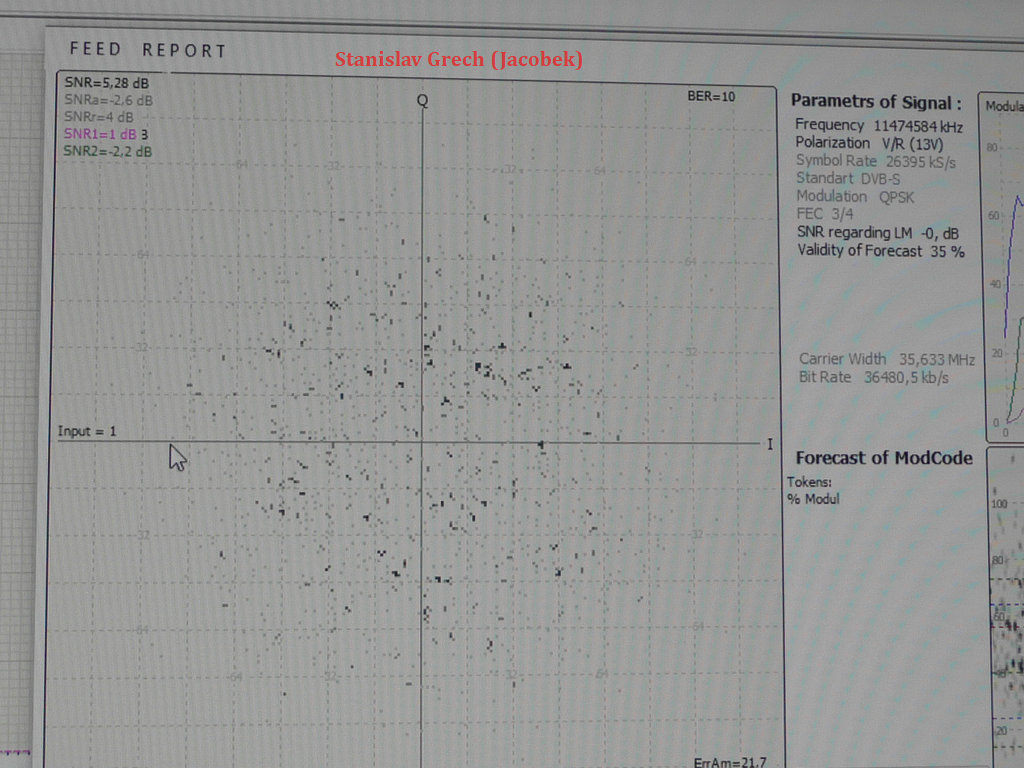 ►1, Všetky výsledky tu prezentovaného satelitného príjmu z družíc AMOS 3/7 sú odvodené od priemeru reflektora paraboly Prodelin D=370 cm.