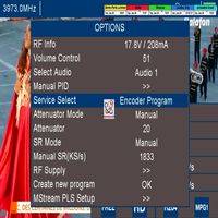 Der Grund dafür ist, dass seine Softwareausstattung nicht über die grundlegende und notwendige Funktion zur manuellen Eingabe der Symbolrate (SR) verfügt. Nach Eingabe der offiziell gültigen Downlink-Frequenz für Balafon TV (f = 3 973 MHz) stimmt der Analyzer Mosaiq6 stets einen anderen Träger ab, konkret My Righteous TV auf f = 3 975 MHz (SR = 1000 kSym/s), und nicht den gewünschten Träger Balafon TV auf f = 3 973 MHz (SR = 1833 kSym/s).