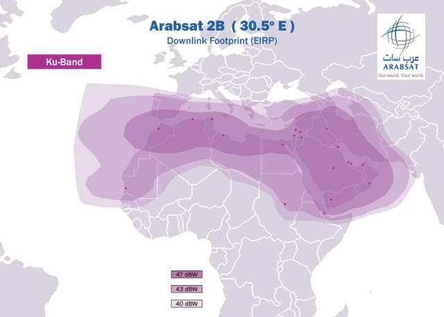 ARABSAT 2B na 30,5°E KU band H a V polarizácia - PAKETY ROTANA TV , KUWAIT TV , ERI TV