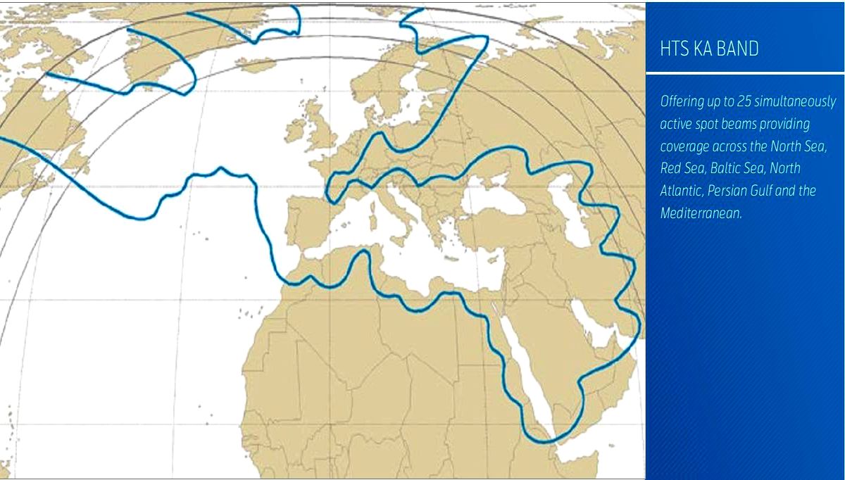 a, 30x forward and return link spot beams covering themaritime areas surrounding Europe including the North Sea, Norwegian Sea,