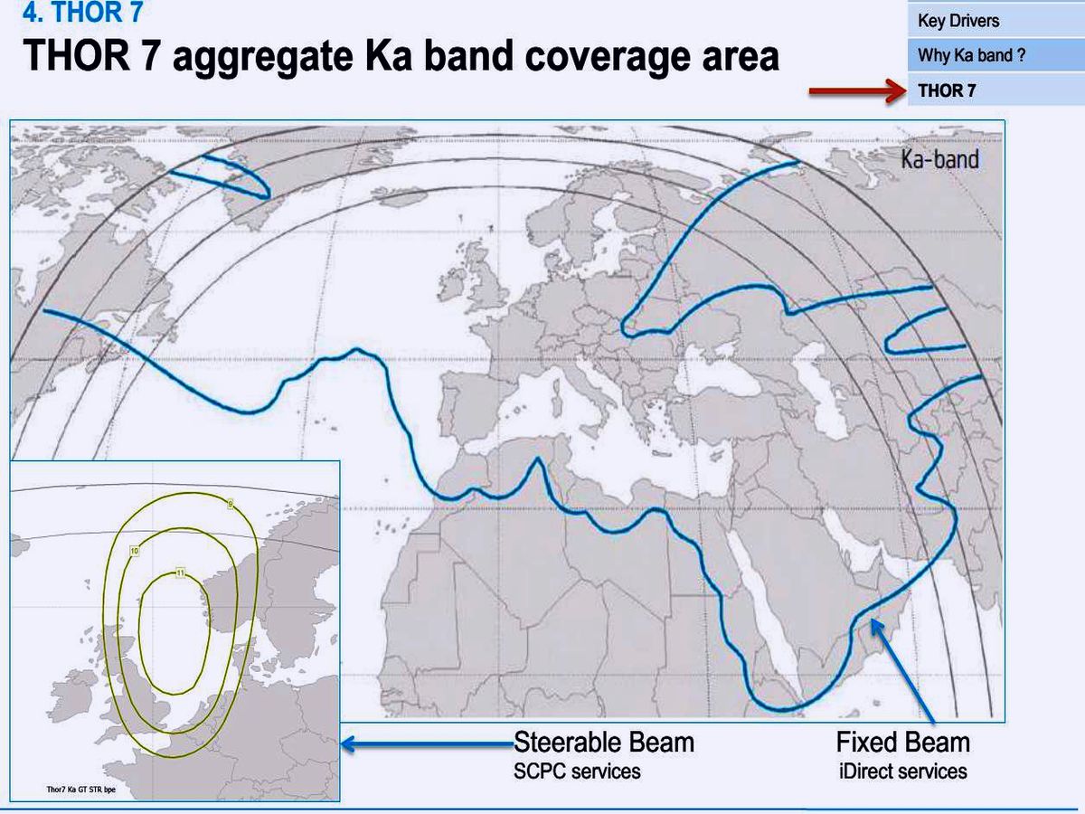 Thor 7 maritime VSAT payload Can be positioned anywhere over the