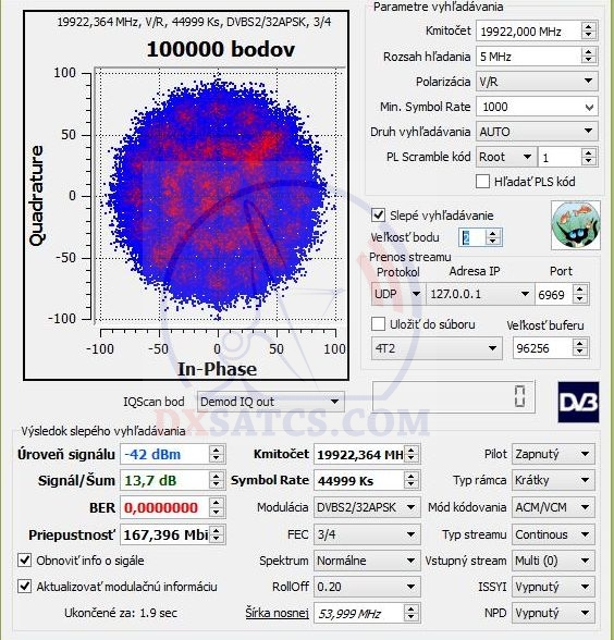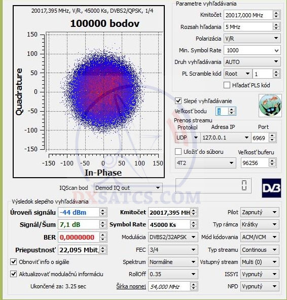 | Analyzed frequency spectrum + polarisation | 19 700 - 20 200 MHz , LHCP |