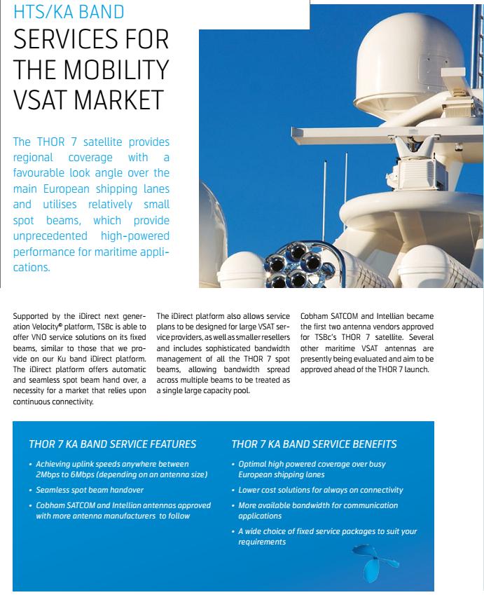 a,Ka band services for the Mobility VSAT market : Telenor Satellite Broadcasting’s (TSBc) THOR 7 Ka-band