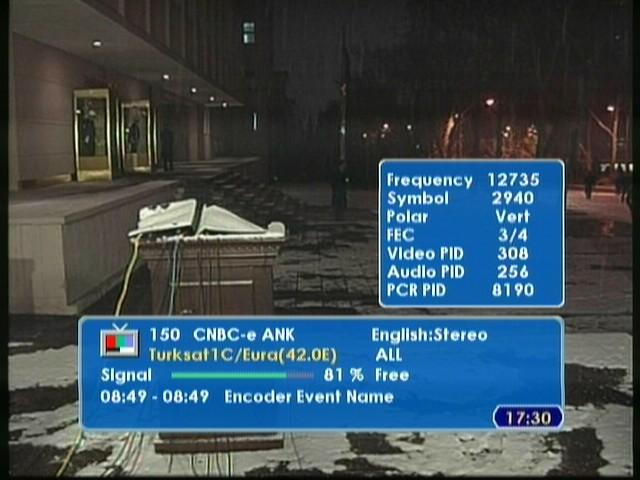 Turksat 3A at 42,0°E : feed CNBCe Ankara 12 735 V