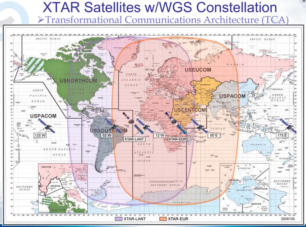 X-band coverage from Eastern Brazil and the Atlantic Ocean,across Europe,Africa and the Middle East as far east as Singapore